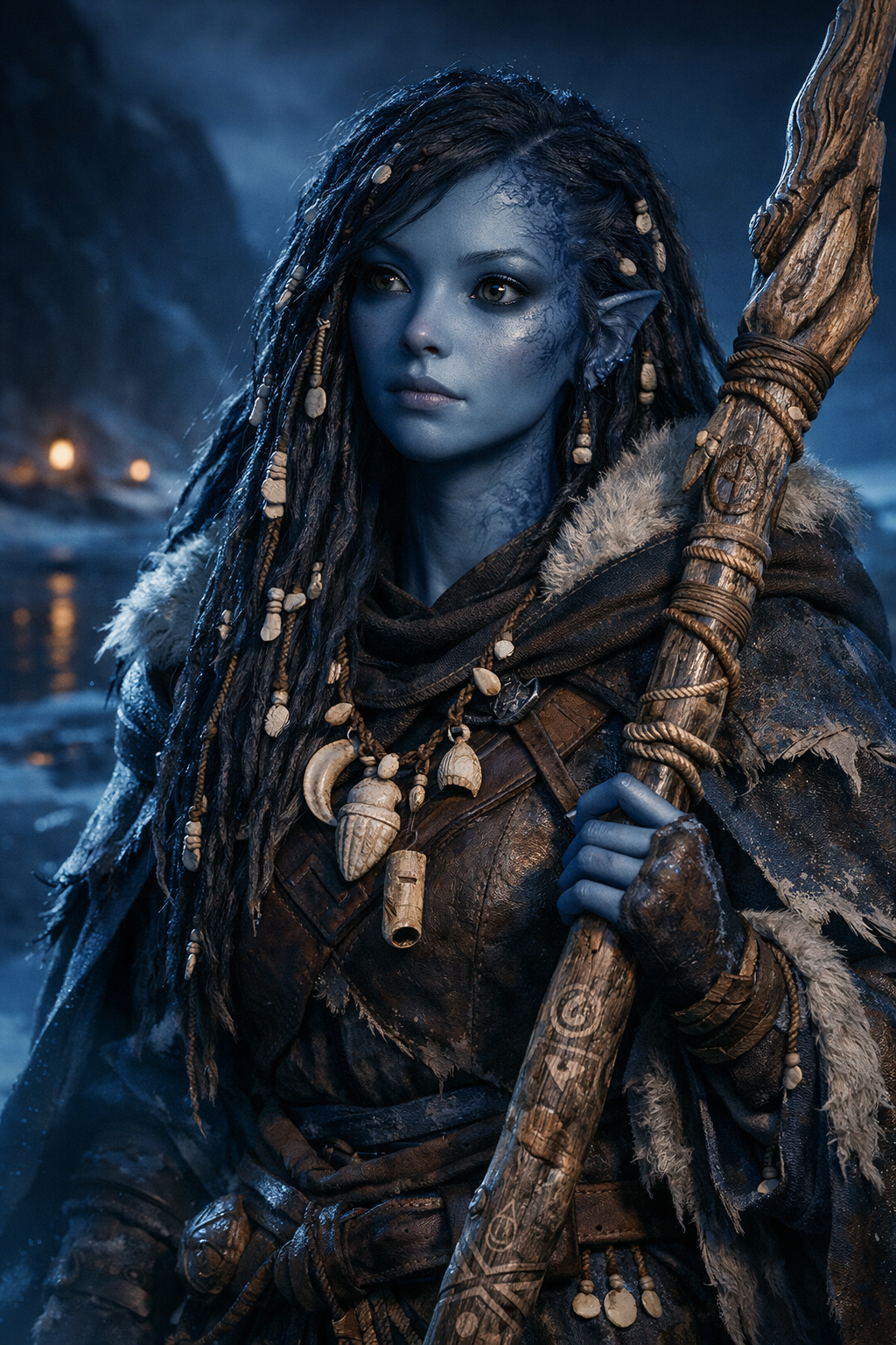Name: Maera Tidecaller Role: Tidewarden of Moonrest Haven Ancestry: Athamaru Age: 38 Disposition: Calm, observant, patient — speaks little but listens constantly to the sea.